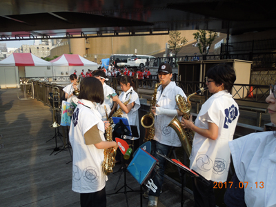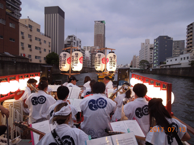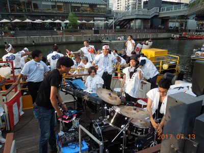 7月13日に開催された第16回難波八阪神社船渡御巡幸の模様です。ミナミまち育てネットワークの供奉船として大阪芸術大学のビッグバンドが乗船し、ジャズの演奏で巡幸を盛り上げました。大阪も34℃という猛暑の天候でしたが、大阪芸術大学のみなさんは迫力のある演奏をしていただきました。当日の模様ご覧下さい。