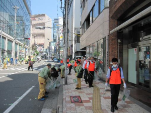 2022年5月18日、難波駅周辺“ゆめまちロードOSAKA”に参加、難波駅周辺の商店会・商店街、企業の多くの方々と、また大阪市役所などの行政の方々と官民協働で、地域の清掃活動と環境美化活動に取り組みました。