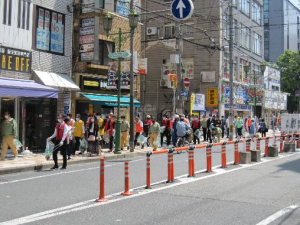 メンバーは2手に分かれて、ミナミの路上のごみを拾い、また20名様ほどはなんば駅前広場の「ガムはがし」を行いました。