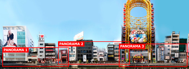 みんなの話題にのぼる有名店、ミナミの隠れたお勧めスポット、気になるあの看板の正体……パノラマ写真で見るミナミの街並み、第一弾は道頓堀の「とんぼりリバーウォーク」です。とんぼりリバーウォークの整備に合わせて、色々なお店が川沿いに顔を出し始めています。少しずつ生まれ変わる道頓堀周辺をパノラマ写真でご覧ください。