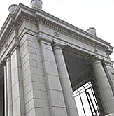 まずは少し離れたところから建物全体をご覧ください。角の丸みや古代ギリシャを彷彿させるコリント式の柱の丸み、柱と柱をつなぐアーチの丸み…この曲線美の数々!屋上の真っ青な「ラピート」地球の丸みさえも美しく感じます。