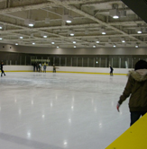 続いてやってきましたのが、浪速区スポーツセンターのアイススケート場です。そういえばミナミには大阪球場の隣にアイススケート場があったことを覚えていらっしゃるかたも多いのではないでしょうか。ふたりの娘も今回非常に来るのを楽しみにしていたスポットです。早速貸し靴を借りてリンクへと向かうと、将来の浅田真央、安藤美姫ちゃんがたくさん華麗に滑っています。私たち家族もスケーティングレベルはお構いなしに、そろりそろりとリンクに登場。私自身36年ぶりのスケート挑戦ですが、10分もすればそこそこすべれるようになりました。どうだと言わんばかりに子供を振り返ると、いつの間にやらスイスイ滑っています。そうこうしているうちに高校生ぐらいのグループなども増えてきました。近くに居た上級者の人から靴の履き方のポイントを教わり、元気よくお礼を述べている姿を見ると爽やかな気分になりました。