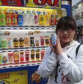これは難波で私とこうさんが探した、一番安い自動販売機です。ほほ~ 郵便局隣にありますよ!うれしいので、私たちはここで記念写真を撮りました。Blogで「あなたが自動販売機の代弁者らしい」と返事をもらいました。 はは~