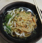 うどん~ おいしいですよ。でもちょっと少しね。ショッピングのあと帰る時、寒くてお腹がすいたので、うどんを食べました。種類が多いので、何を食べるかの問題もありました。大阪に来る前、日本の先生が、大阪のたこ焼きが有名と教えてくれましました。たこ焼きは本当においしかったです。この店員は大変面白くて、親切な人です。大好きですね。 たこ焼きのソースがおいしい、好きです。